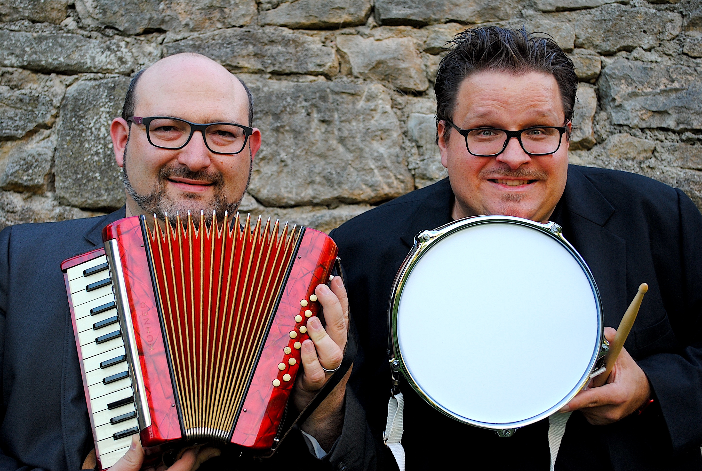 Bernd zieht am Akkordeon, Jürgen haut die Drums. Wir unterhalten mit Musik aus fünf Jahrzehnten, handgemacht. Als dynamisches Duo entführen wir unser Publikum auf eine akustische Reise durch unzählige Musikrichtungen. Unser Stil ist modern, lebhaft und voller Leidenschaft. Von traditionellen Volksliedern über Schlager, Rock und Party-Hits bis hin zu modernen Klassikern – wir geben jedem Song einen einzigartigen Twist, der nur mit Akkordeon und Schlagzeug möglich ist. Glück mit Wumms Auftritte sind ein Tastenfeuerwerk, das jeden Zuhörer mitreißt. Wir feiern das Akkordeon mit seiner überraschenden Vielfalt, dazu groovige Drums und zweistimmiger Gesang. Oder wie wir es nennen: Quetsch - Bumm - Trallala. Ob bei Festen, Fasnet, Firmenevents oder bei privaten Veranstaltungen wie Geburtstage, Hochzeiten und Jubiläen, wir bringen Spaß und Unterhaltung zu euch. Erlebt mit Glück mit Wumms musikalische Momente, die ihr noch lange in Erinnerung behalten werdet. Wir sind nicht nur ein Duo, wir sind ein Erlebnis, das ihr nicht verpassen dürft. Also kommt zu unseren nächsten Auftritten oder bucht uns für euren nächsten Event.